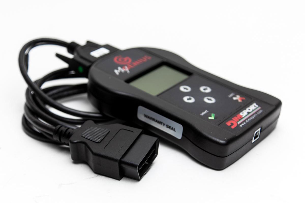 Dimsport MyGenius is the portable Personal OBD Programmer that will allow your customers to program the ECUs of their vehicles in complete autonomy, using your preloaded modified maps. It can store up to 10 maps on the device and it is locked to one VIN.